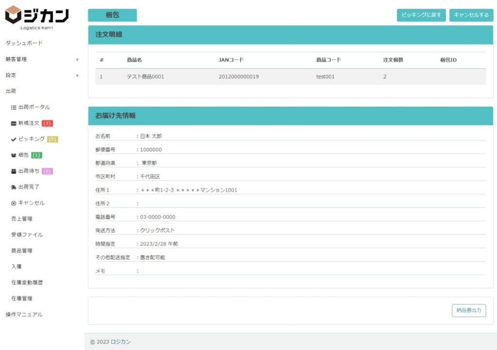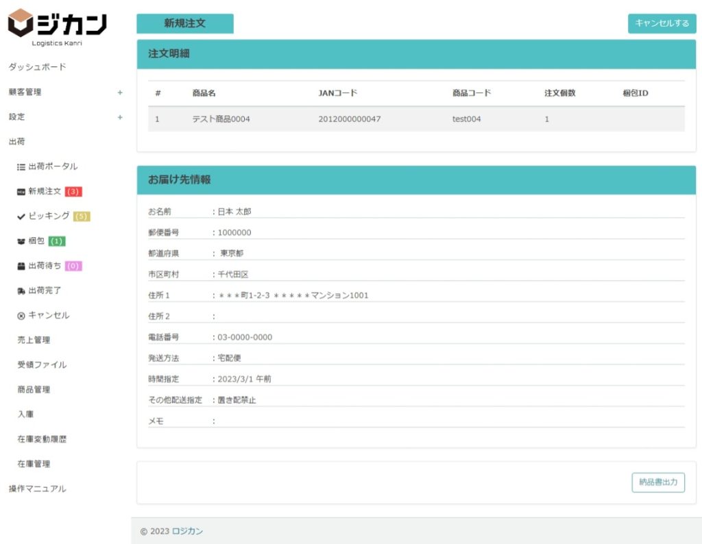 ※ステータスが、「新規注文」~「梱包済み」の場合、キャンセルが可能です。