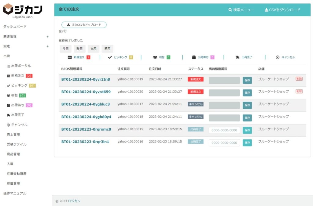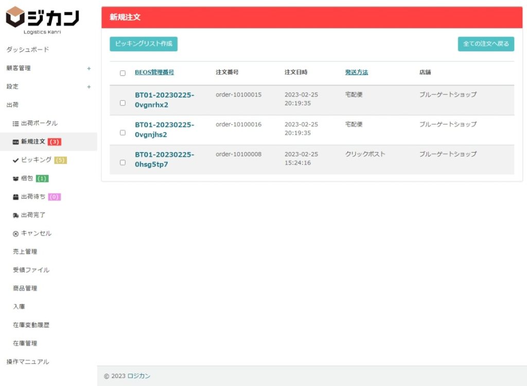 「新規注文」メニューから、対象の注文番号をクリックします。
