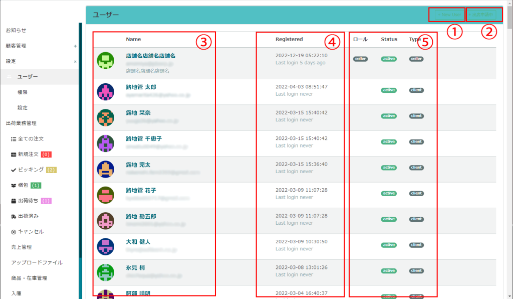 ユーザーの管理ページです。ユーザーの登録/修正/削除ができます。