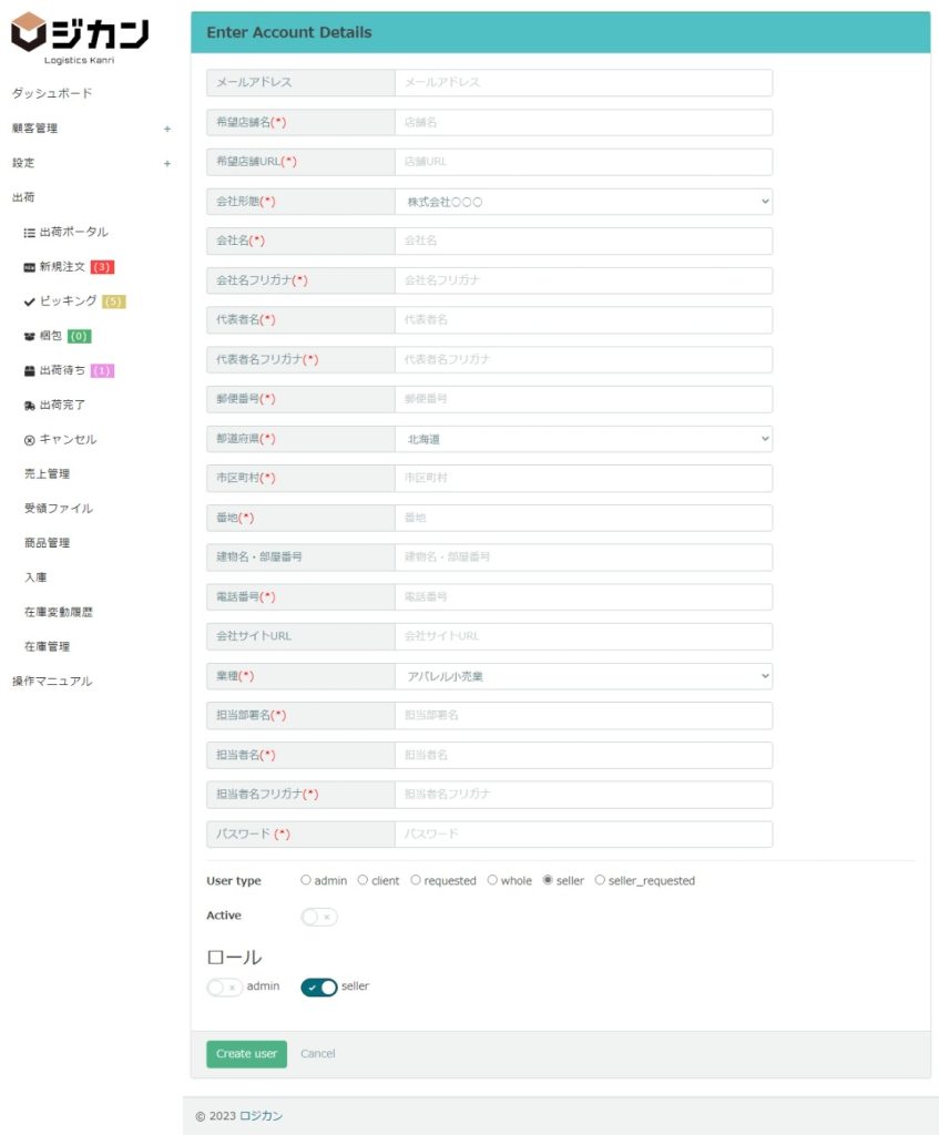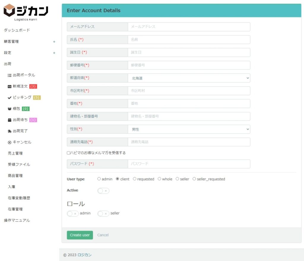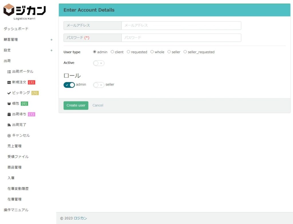 選択した「User type」によりロジカンシステムが自動で設定しますので、操作はできません。